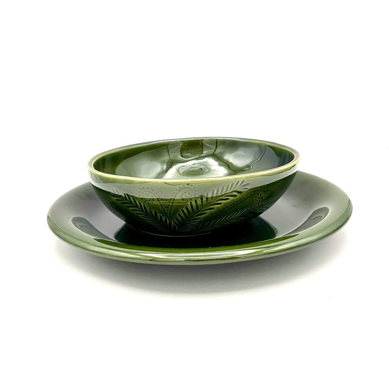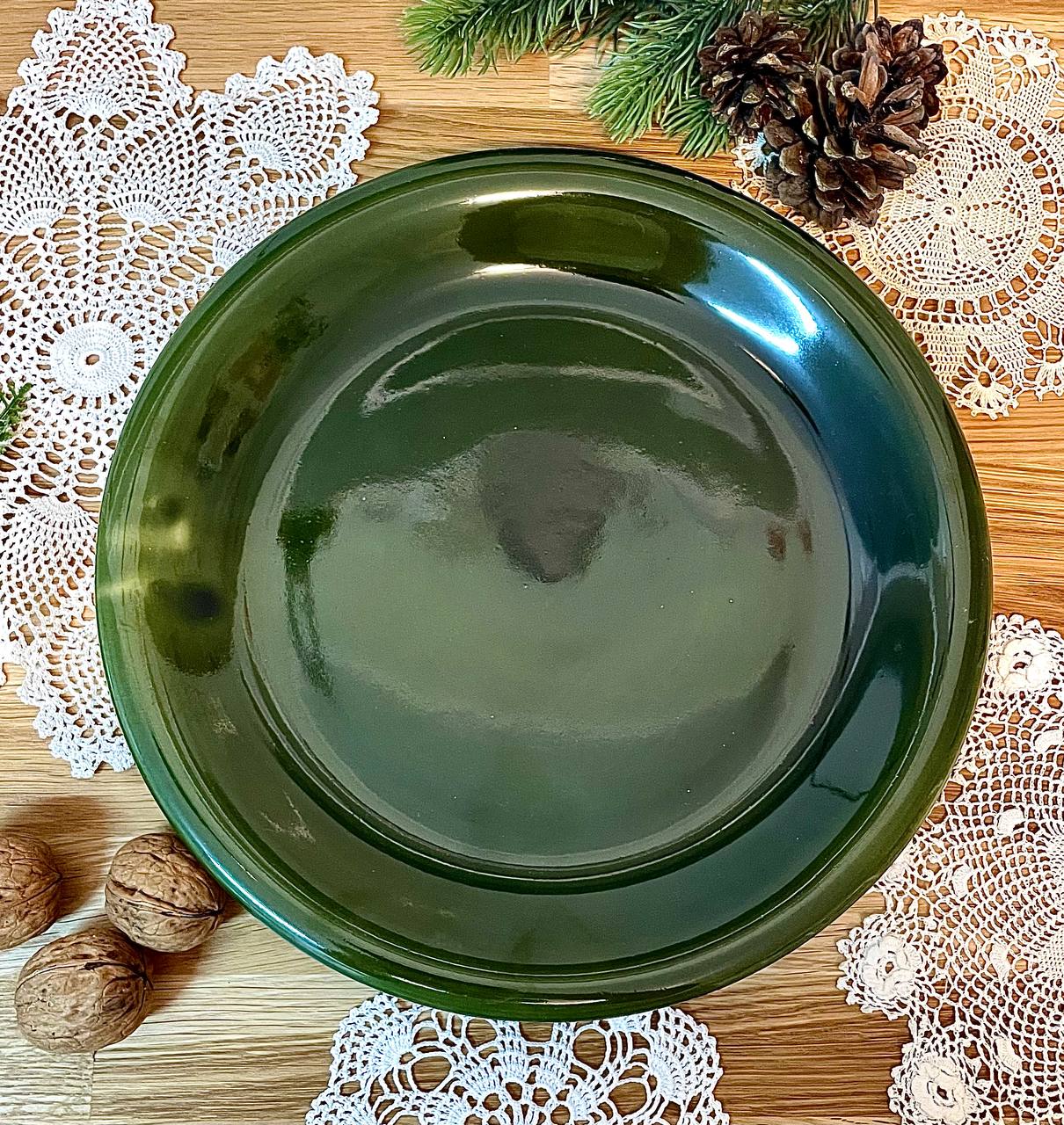 Talerz kamionkowy w pięknym, głębokim ziołowym kolorze. Idealny samodzielnie i w połączeniu z miską 400 ml lub misą 1000 ml.